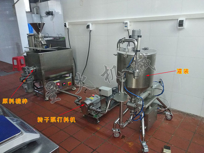 这款沙茶酱半自动灌装机结合了搅拌机、转子泵打料机以及半自动酱料灌装机,可以很好的满足各式各样酱料的灌装生产,含有颗粒并且浓度较大的酱料都可以满足,可谓实用性非常广。该
