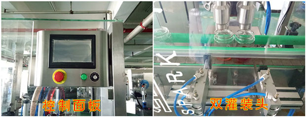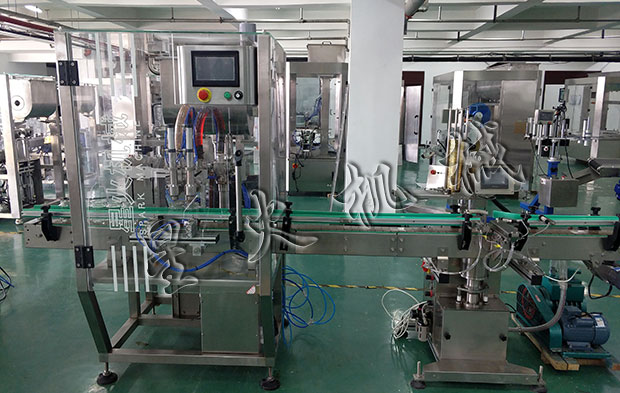 自动化浓酱灌装机不仅可单机使用,还可以与其他配套设备联合使用组成高效地自动化酱料灌装生产线,辉达娱乐提供各种酱料生产的方案,下图为我司提供的辣椒酱玻璃瓶灌装机与真空旋盖机配套使用的方案。